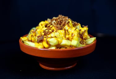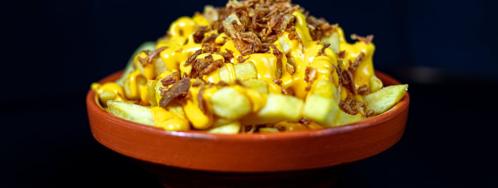 hrustljav krompirček s stopljenim sirom, slanino, hrustljava čebula