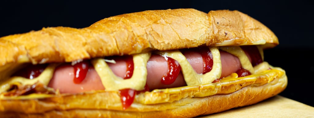 telečja hrenovka v luknji štruce, kečap/majoneza/gorčica